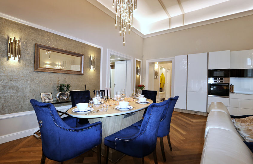 Budapest nyüzsgő belvárosában egy kristály csiszolású otthon. A fények emelik az eleganciát ebben a 4,5 m belmagasságú otthonban.