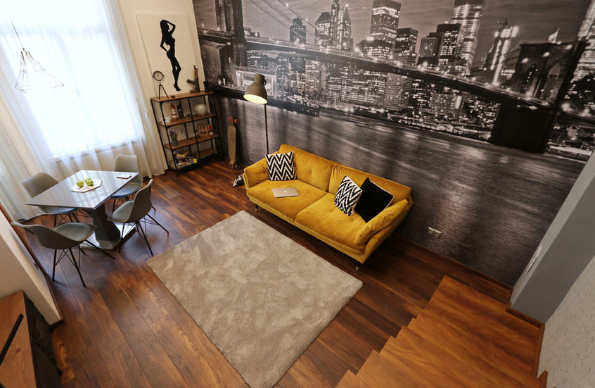 Budapest centrumában egy cosmopolita tulajdonos otthona. A férfias kiegészítők tükrözik a laza életvitelt ebben a mini stúdió lakásban.